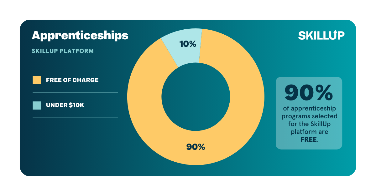 Cost is one of the biggest barriers when people consider a new training program. Here's some good news: 90% of apprenticeship programs on SkillUp are free, and 10% are under $10,000. That's a wide-open door for people who assumed this kind of training was out of reach.