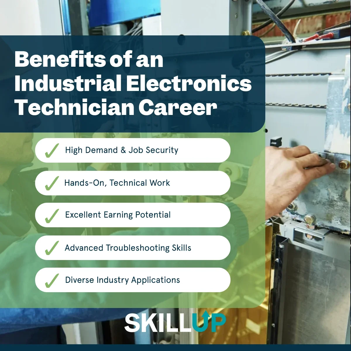 You don’t need a degree to become an industrial electronics technician, but this job does require technical training, hands-on learning, and a comfort level with tools, systems, and schematics.